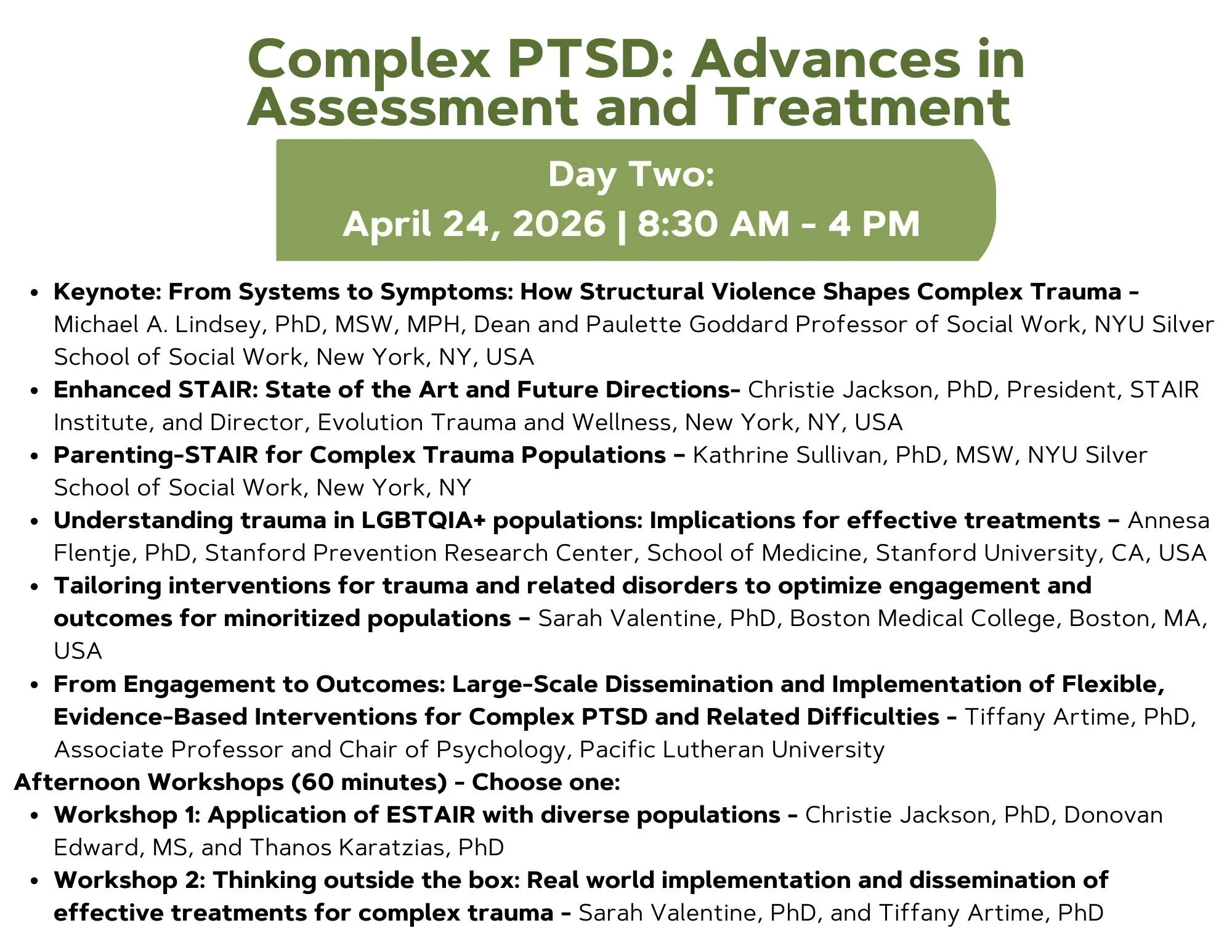 For reservations, please use this direct link: CPTSD and ESTAIR Conference